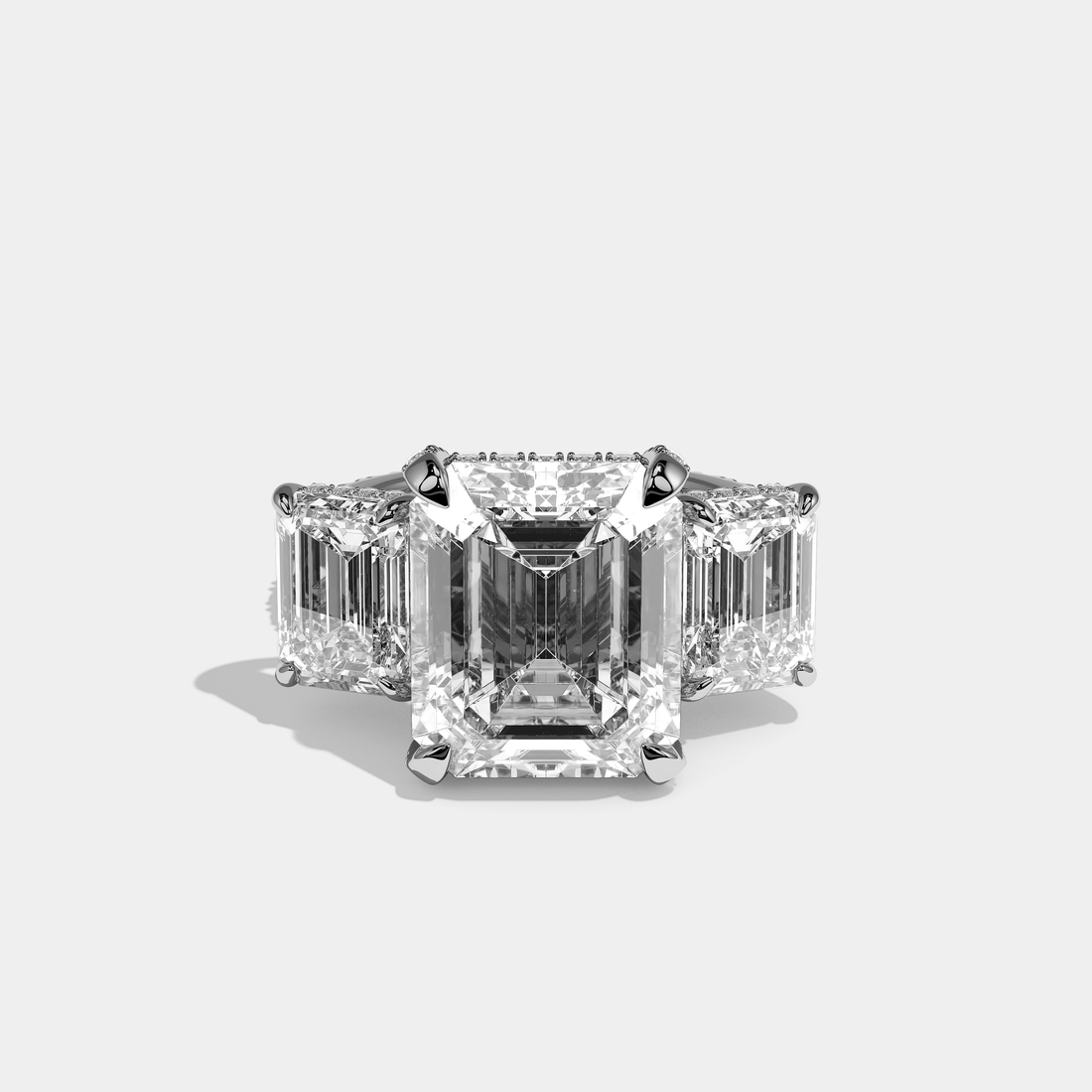 Marcellin Royale, the exquisitely composed 25.00 carat total weight Diamond Emerald Halo Engagement Ring in...