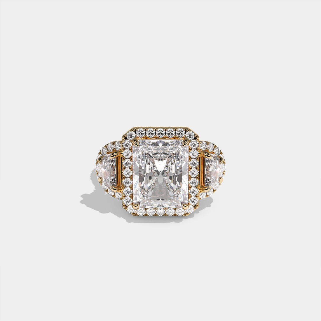 Aveline Lady Godiva Diamond Radiant Halo Engagement Ring 18K Yellow Gold 15.00ct