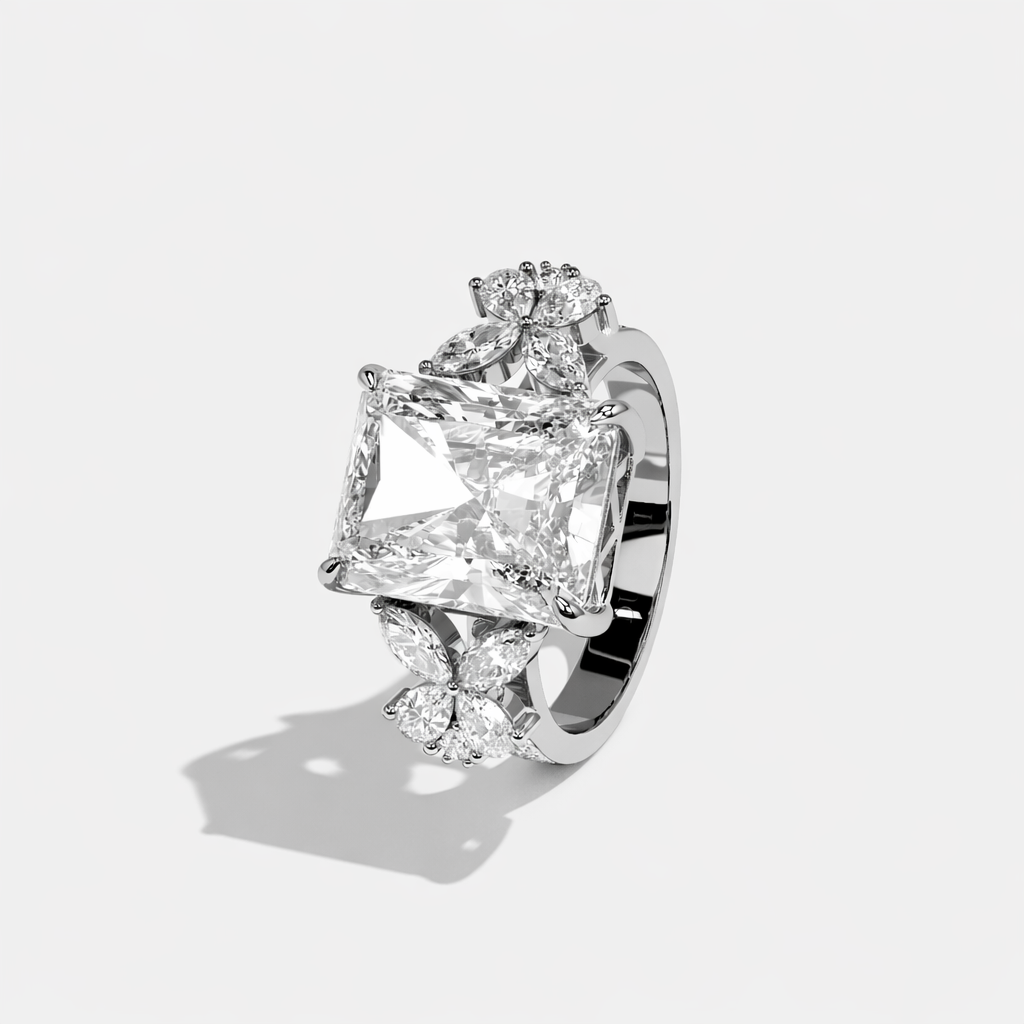 Split Eclat Diamond Radiant Halo Engagement Ring