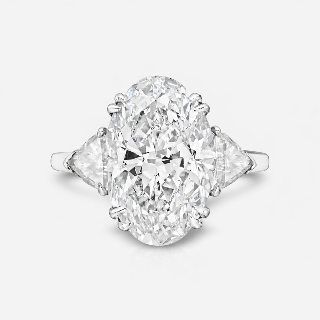 6.19 Carats Oval Diamond & 2 Trillion Cut Diamonds