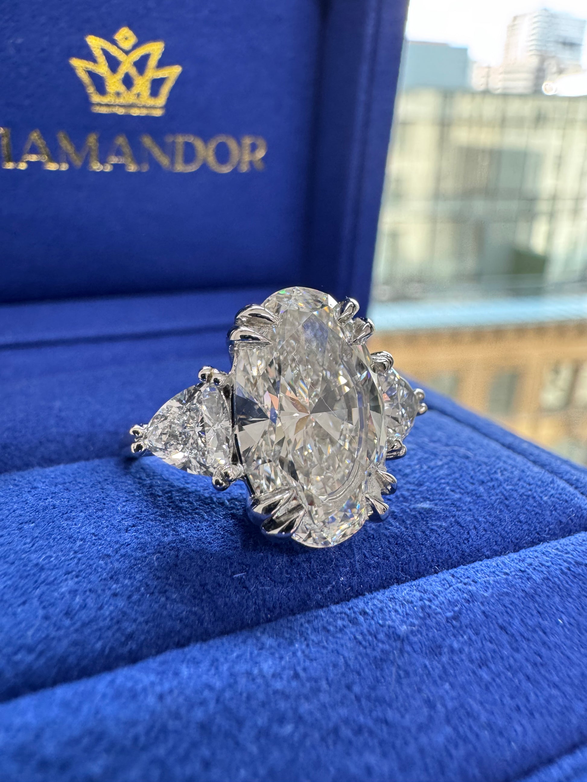 6.19 Carats Oval Diamond & 2 Trillion Cut Diamonds