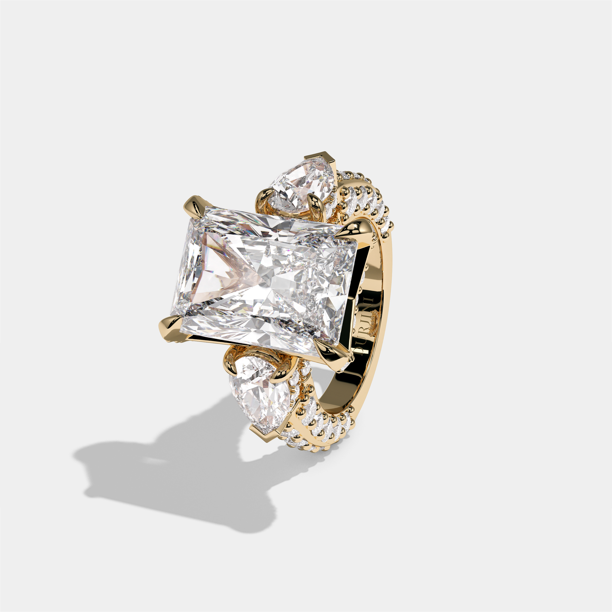 Hannah Eclat Kingsbridge Diamond Radiant Halo Engagement Ring 18K Yellow Gold 15.00ct