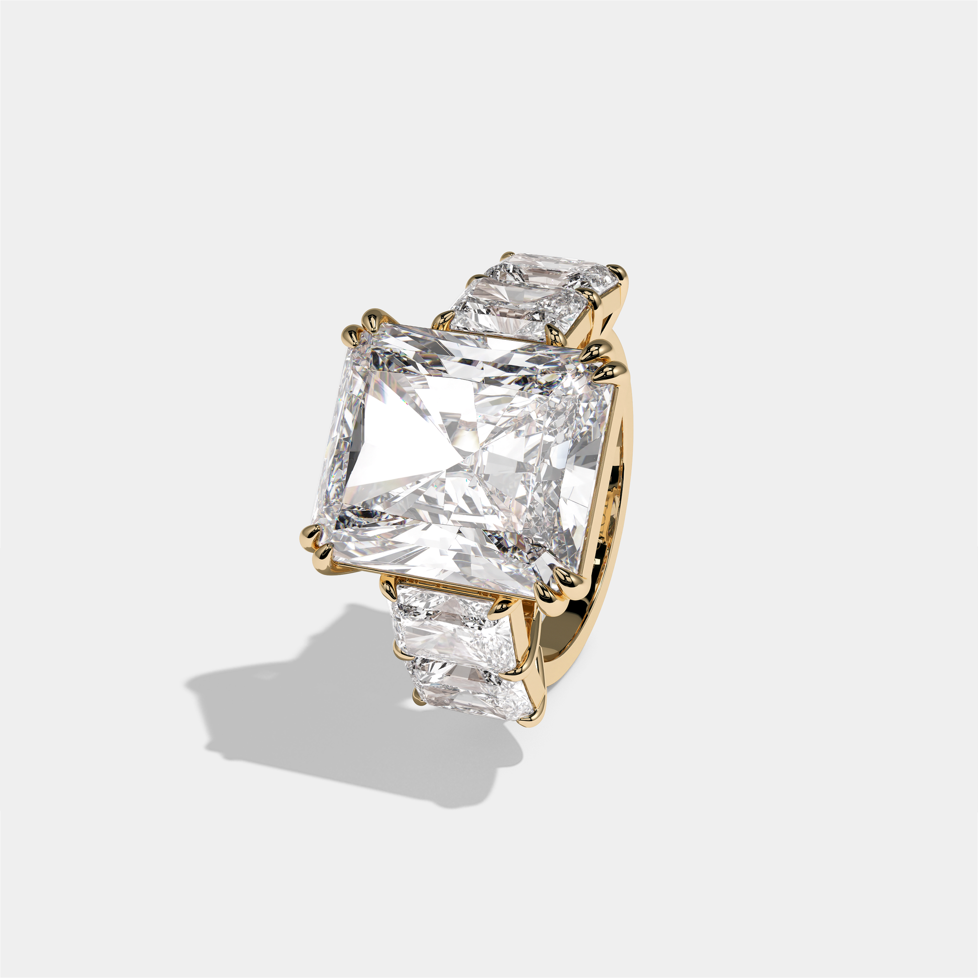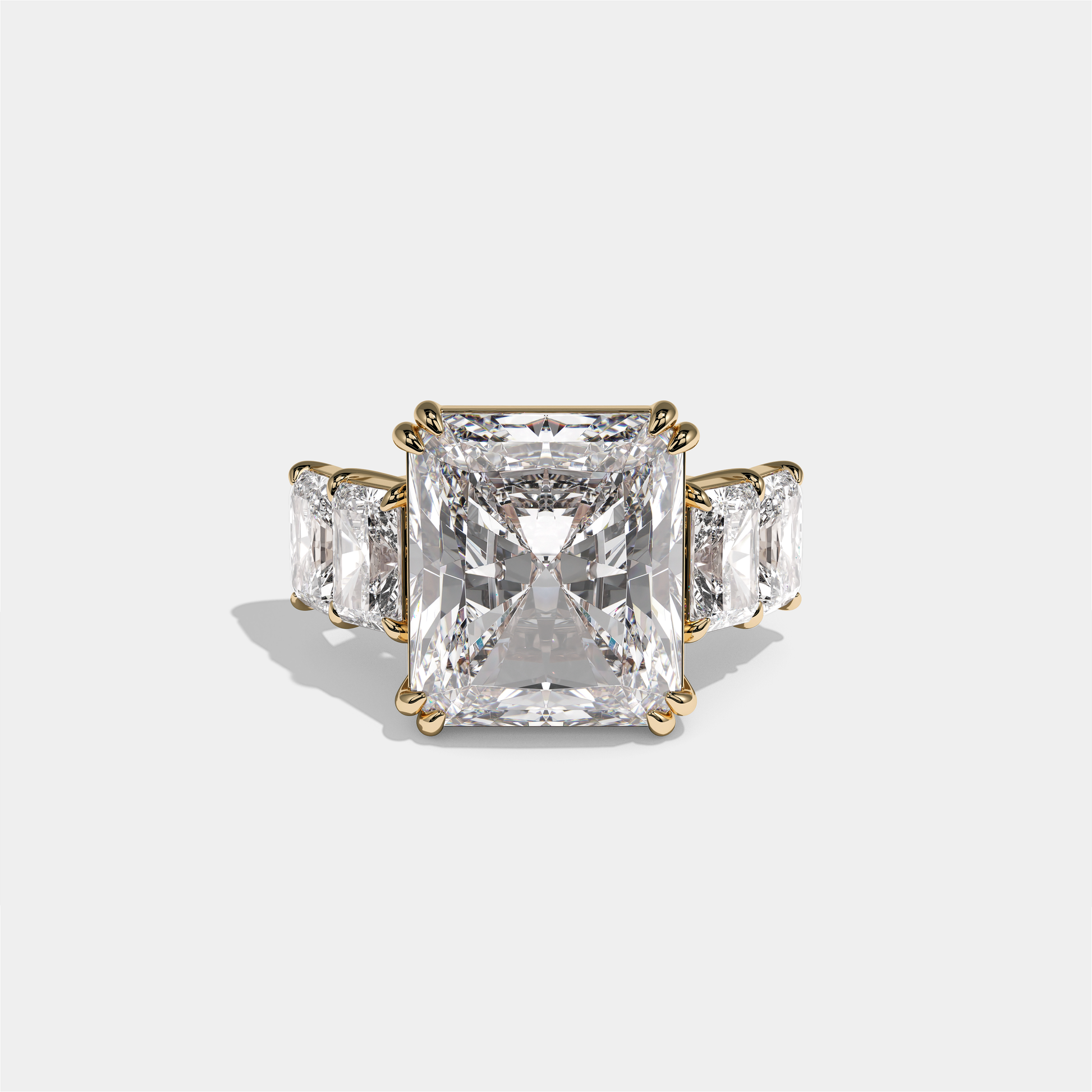 Hila Highgrove, the exquisitely composed 40.00 carat total weight Diamond Radiant Halo Engagement Ring in 18K yellow gold, unites the structured elegance of a radiant-cut diamond with the noble warmth of rich gold. A luminous radiant-cut centre stone, encircled by a halo of round brilliant diamonds, is set in glowing yellow gold to create a ring that feels both opulent and regally composed. Worn alone as a golden declaration of love or alongside a slender gold or diamond band, Hila Highgrove evokes the quiet grandeur and splendour of a modern titled heirloom.