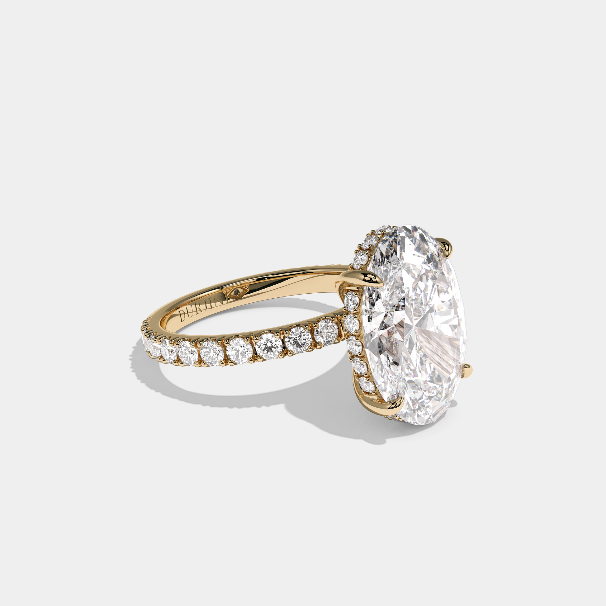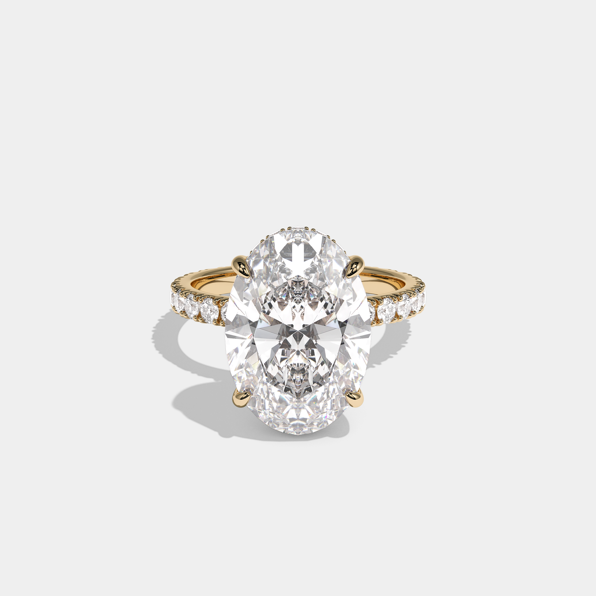 Lucien Royale, the exquisitely composed 10.00 carat total weight Diamond Oval Halo Engagement Ring in 18K yellow gold, unites golden warmth with regal, romantic brilliance. At its heart lies an oval-cut centre diamond, encircled by a halo of round brilliant diamonds and beautifully framed by the rich glow of yellow gold, creating a design that feels both heirloom-inspired and elegantly modern. Worn alone or alongside a classic yellow gold band, Lucien Royale evokes the quiet opulence of royal jewels reimagined for today.