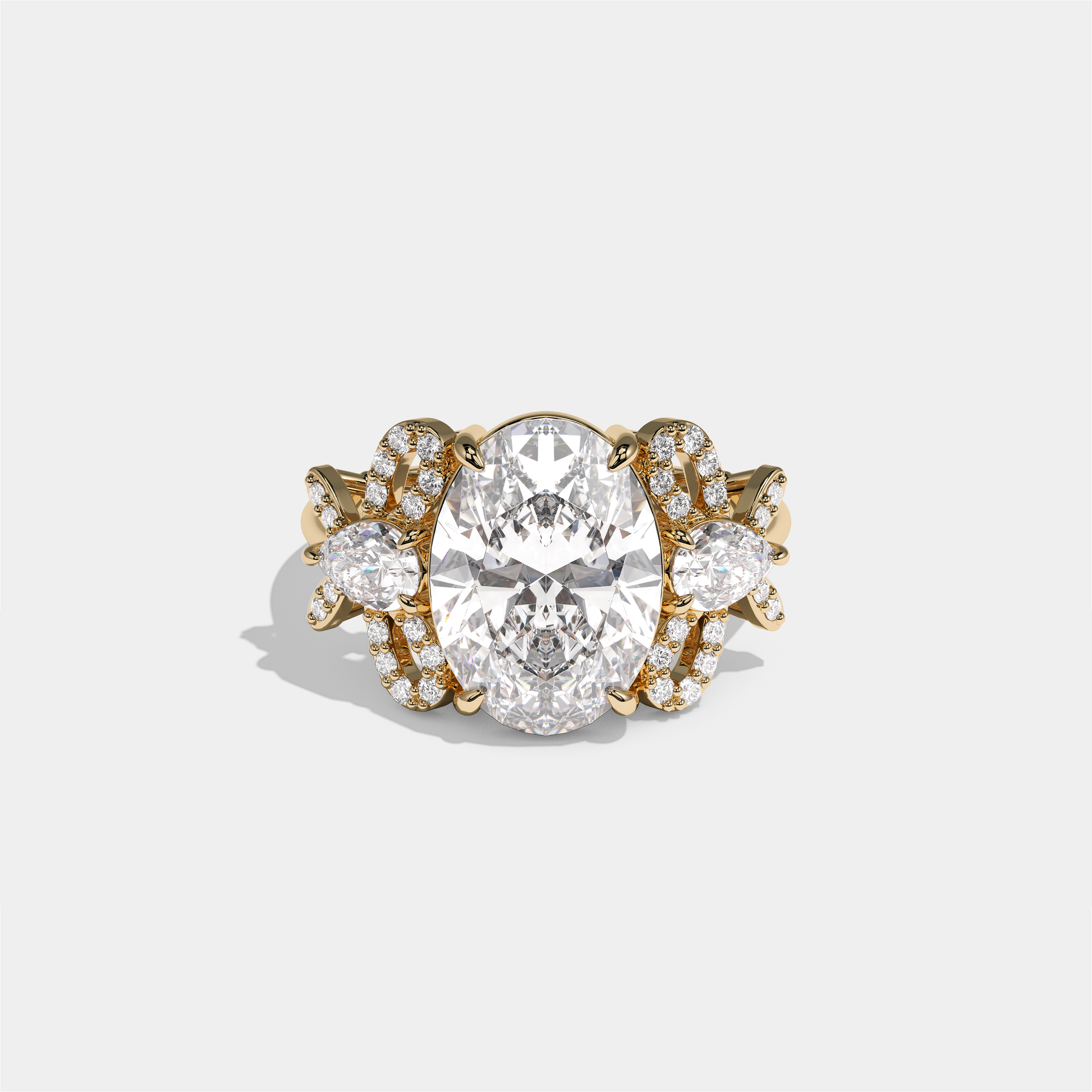 Malkah Rosewood, the exquisitely composed 9.00 carat total weight Diamond Oval Halo Engagement Ring in 18K yellow gold, unites the romantic elegance of an oval-cut diamond with the noble warmth of rich gold. A luminous oval-cut centre stone, encircled by a halo of round brilliant diamonds, is set in glowing yellow gold to create a ring that feels both opulent and regally composed. Worn alone as a golden declaration of love or alongside a slender gold or diamond band, Malkah Rosewood evokes the quiet grandeur and charm of a modern titled heirloom.