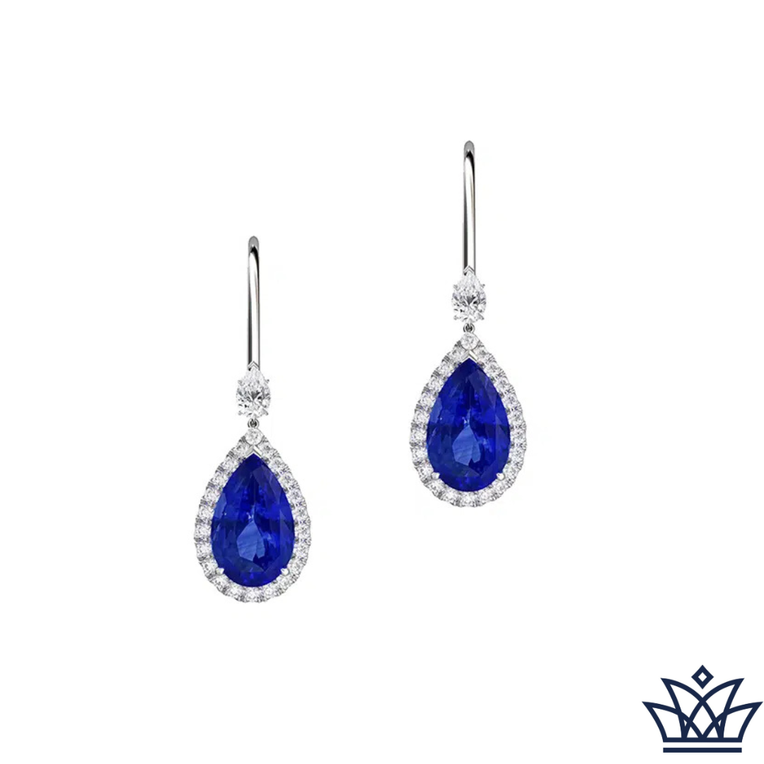 Pear Shape Blue Sapphire Halo Drop Earrings