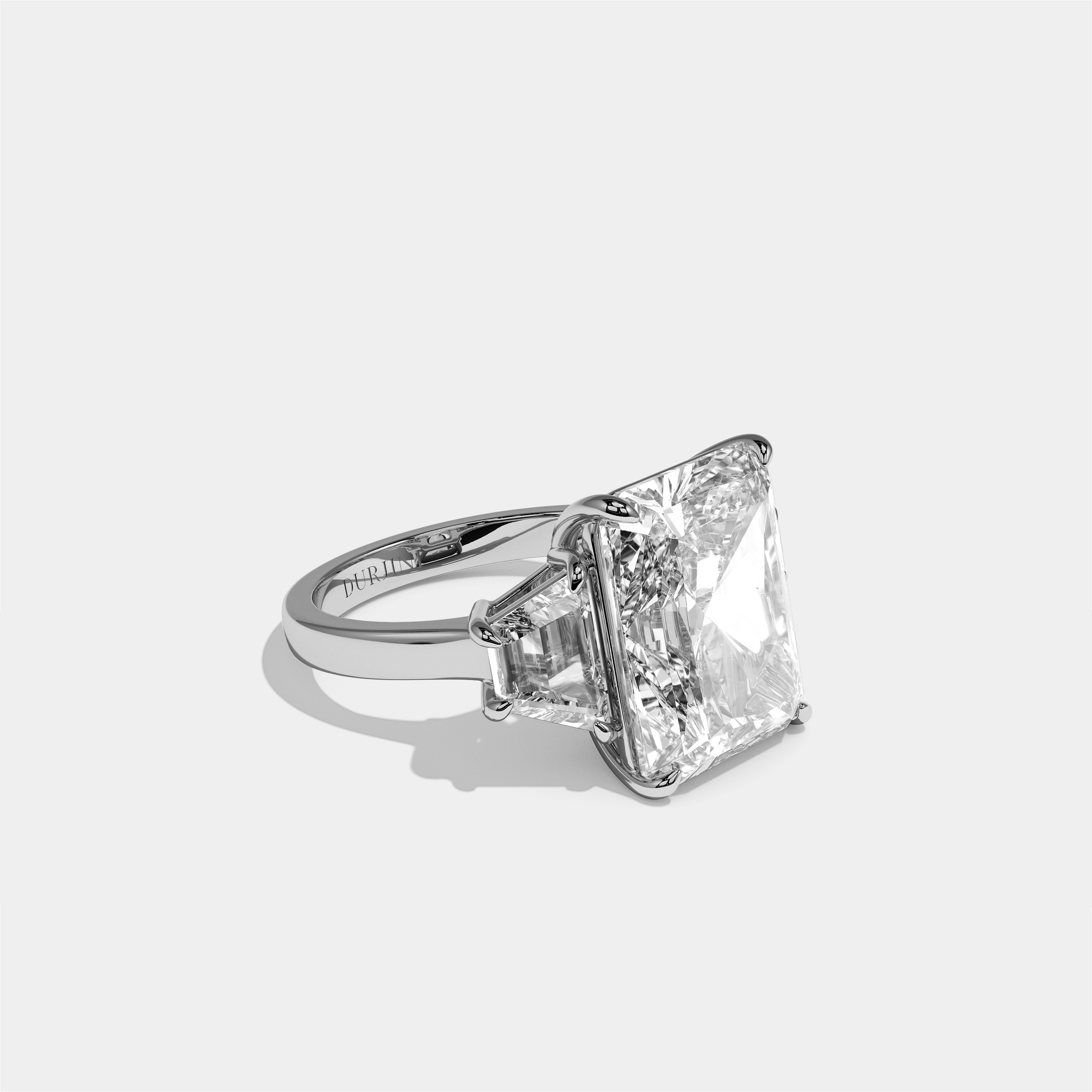 The radiant-cut diamond, with its rectangular silhouette, cropped corners, and brilliant-style faceting, unites the clean lines of an emerald cut with the intense sparkle of a round, releasing a vivid, flashing display of fire at every turn of the hand. The surrounding halo closely traces its outline, amplifying presence, deepening brightness, and forming a refined frame of brilliance visible from every angle. The cool, mirrored sheen of 18K white gold heightens the clarity and scintillation of each stone, lending the ring a high-jewellery finish that is glamorous yet effortlessly wearable. Ideal for those seeking an engagement ring with contemporary structure, halo drama, and classic-meets-modern elegance, Shira is a captivating choice with enduring allure.