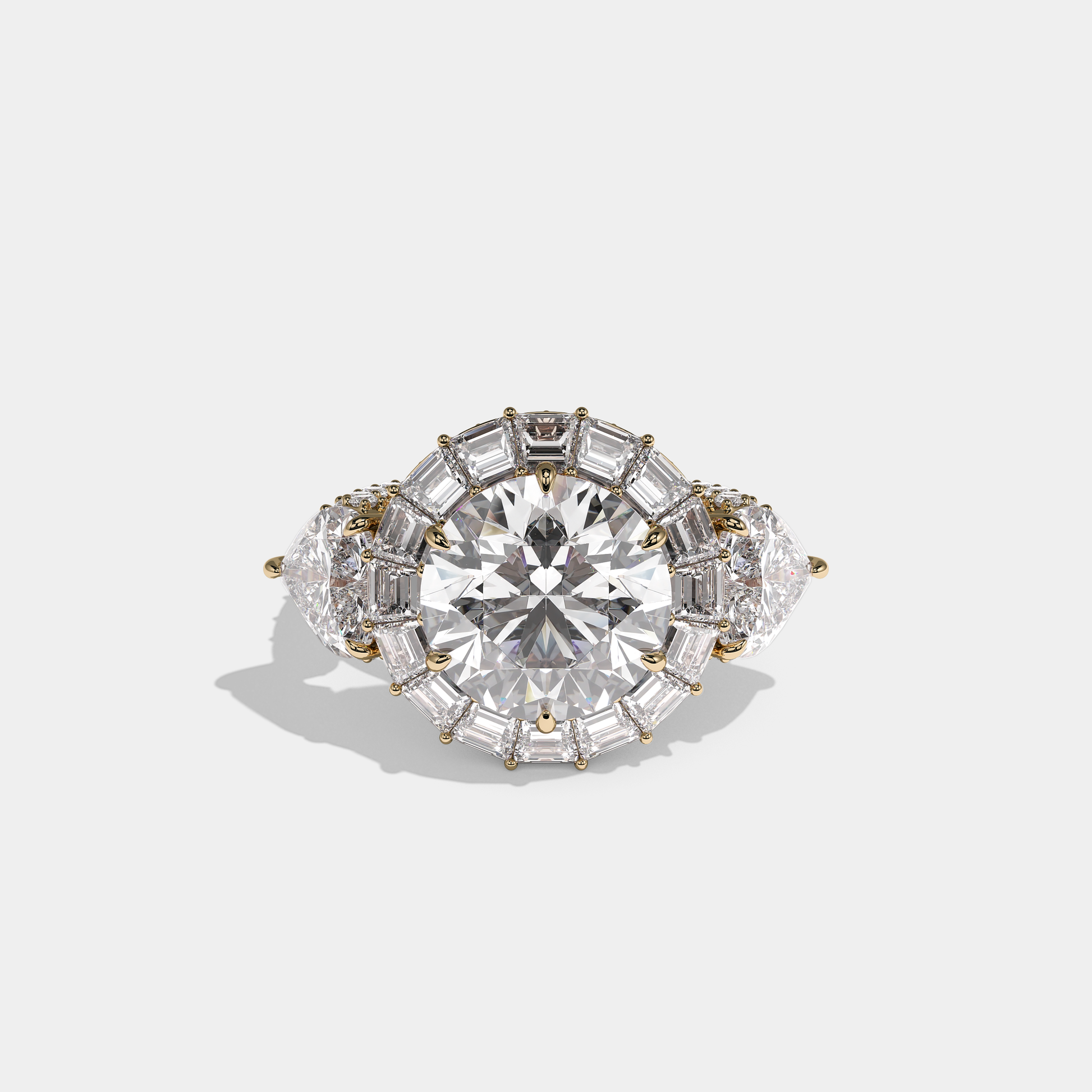 Shira Ravenscourt Diamond Round Brilliant Halo Engagement Ring 18K Yellow Gold 15.00ct